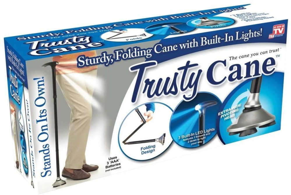 عصا عكاز فخم بتصميم سحري يجمع بين الأمان والراحة. عكاز Trusty Cane قابل للطي ومزود بـ 3 أضواء LED مدمجة لإضاءة الطريق بوضوح. يتميز بقاعدة عريضة متحركة تمنحه الثبات ويجعله واقفًا بذاته دون دعم، ما يجعله الرفيق المثالي لكبار السن أو لأي شخص يحتاج دعمًا إضافيًا في المشي.